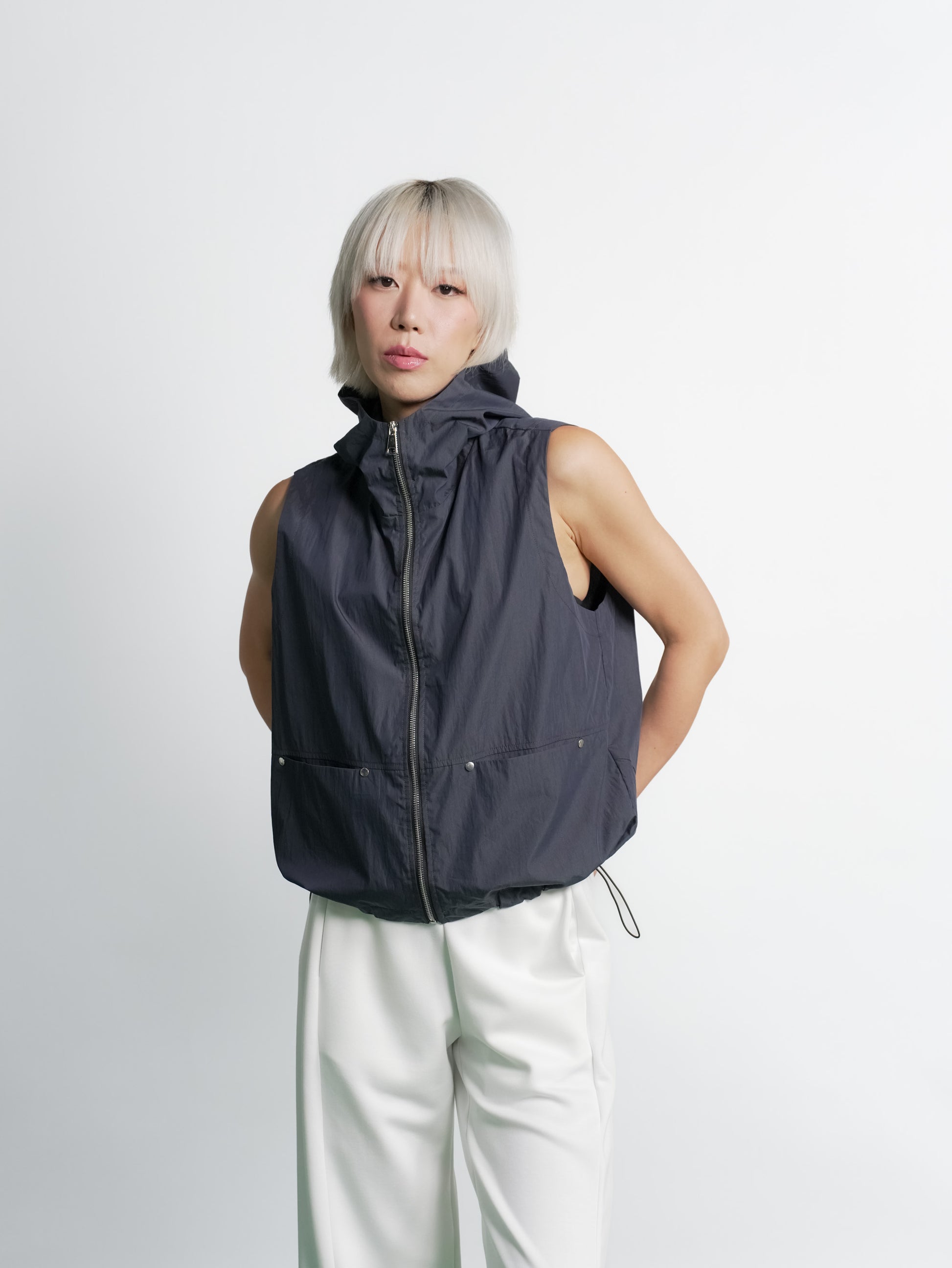 Stay stylish and comfortable with the Dune Sleeveless Top, featuring a high collar and full zip for versatile wear. Adjustable toggles on the hem ensure a perfect fit, while the hood adds extra protection and a sporty edge. Ideal for layering or wearing on its own, this top combines functionality with modern design to elevate your wardrobe.