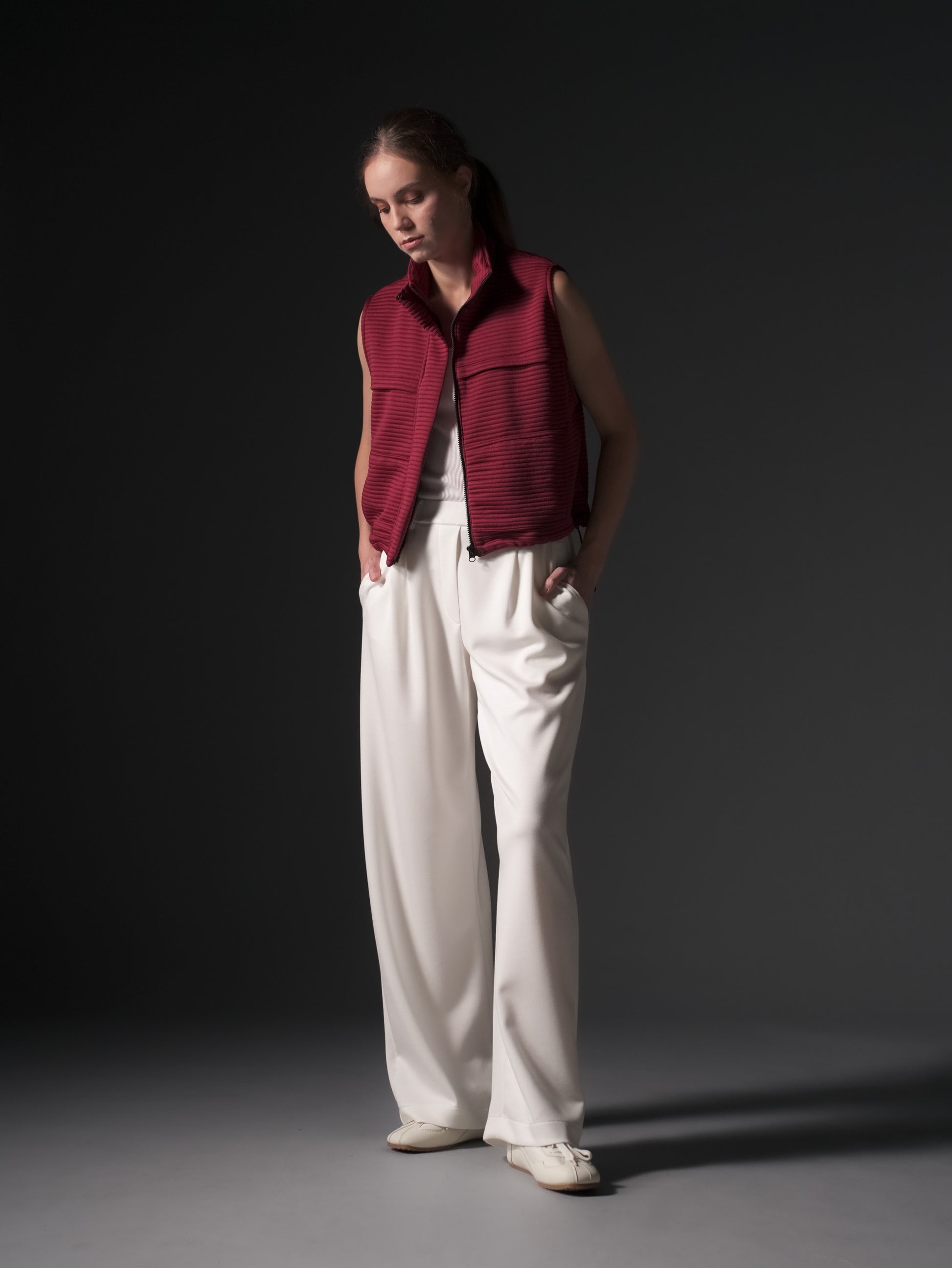 The Maple Ribbed Zip Vest is perfect for laid-back days! It has a semi cropped design that's made from lightweight puff fabric that will keep you comfy all day long. Also, the zip opening adds an extra touch of style, so you can effortlessly wear it as is or as a stylish outer layer.