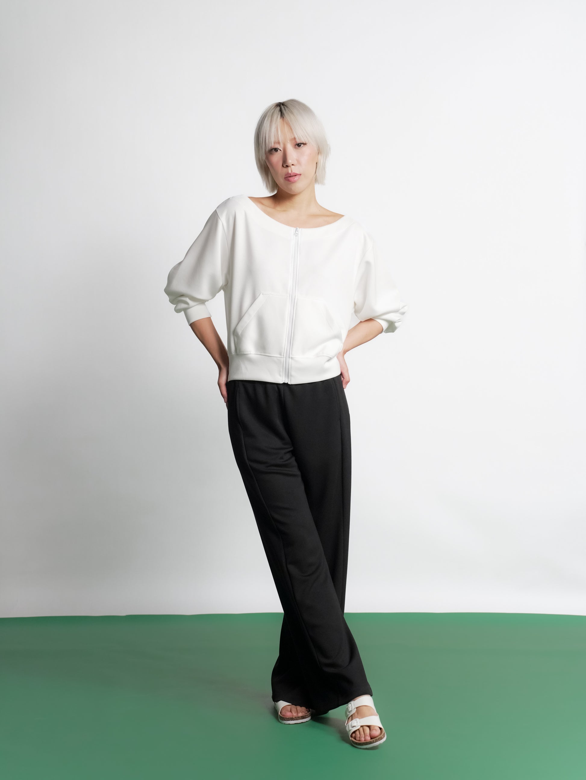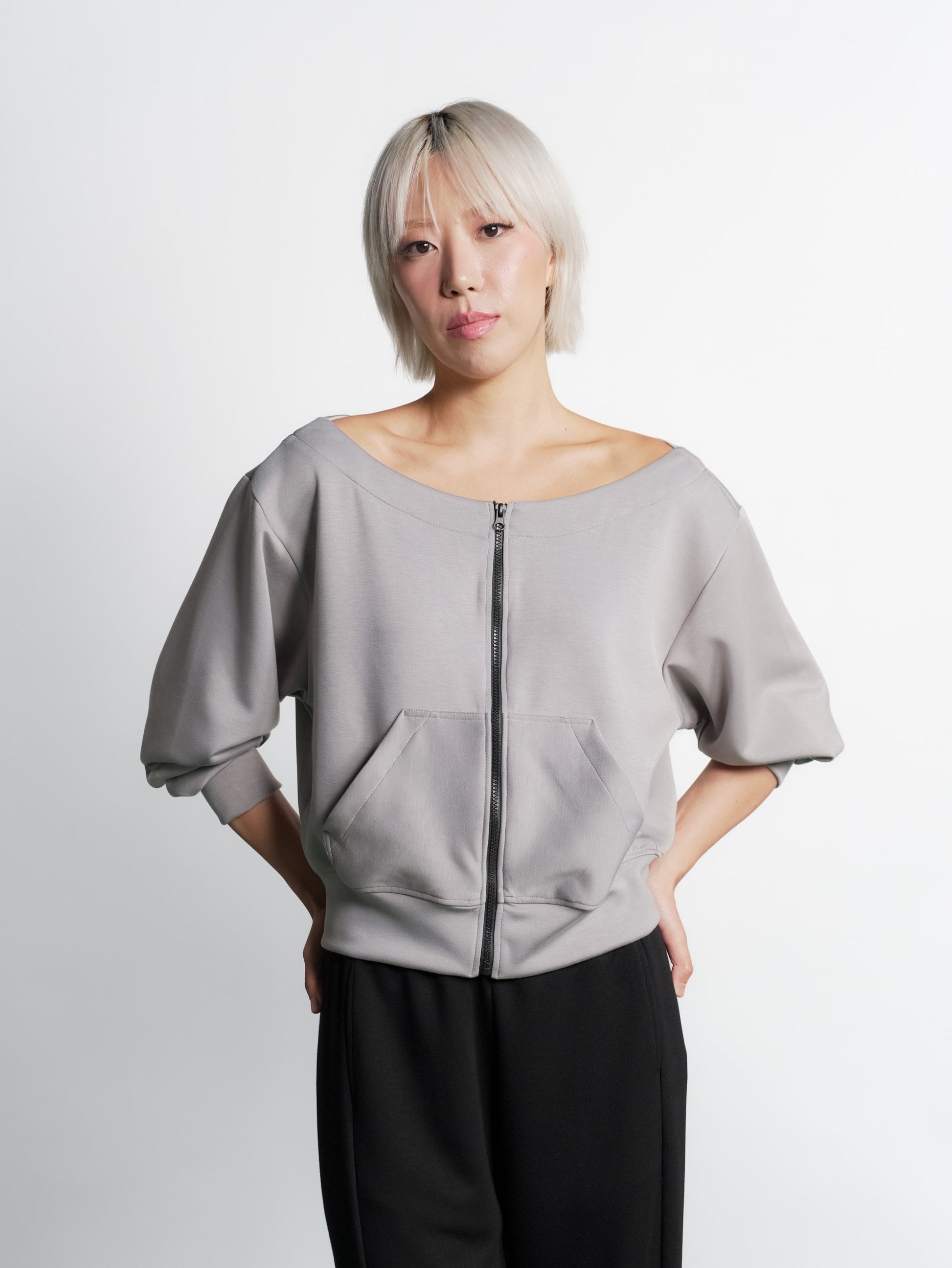 The Mimosa Top features a stylish off-shoulder design with a convenient full zip for easy wear. Its ribbed hem band and sleeve openings ensure a comfortable, secure fit that complements your silhouette. Perfect for adding a chic touch to any outfit while keeping you comfortable all day.