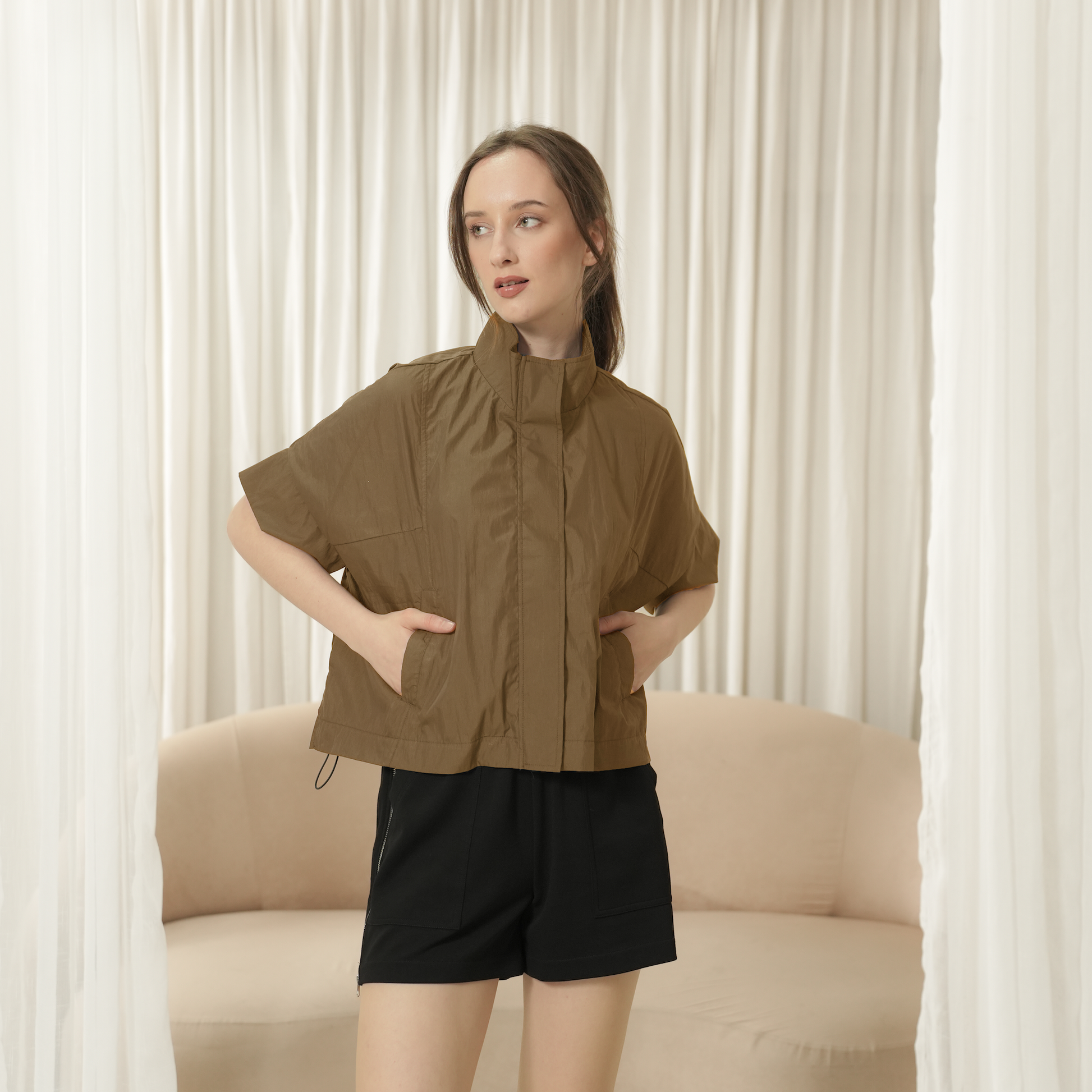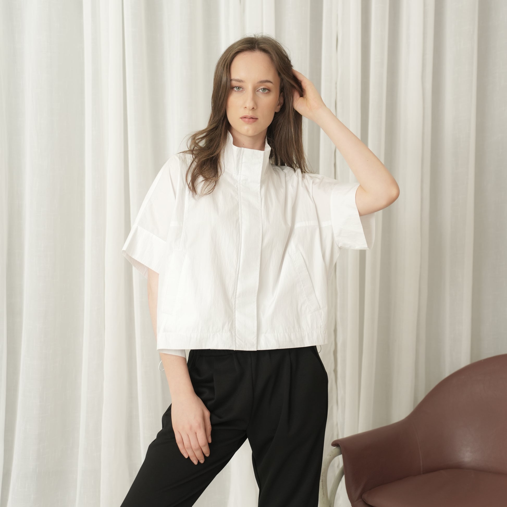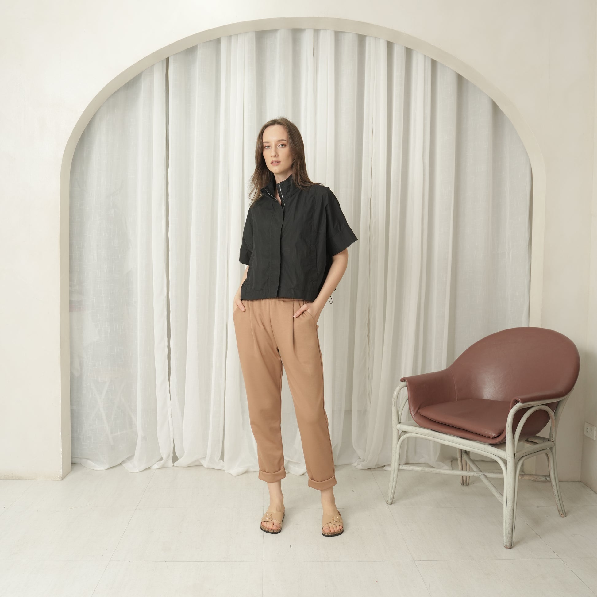 The Nicolas Top features a stylish high collar and full zipper flap closure, providing both fashion and functionality. The adjustable toggles at the back hem allow for a customizable fit, while the front slant pockets add convenience. The boxy fit is both comfortable and modern. Upgrade your wardrobe with the Nicolas Top now!
