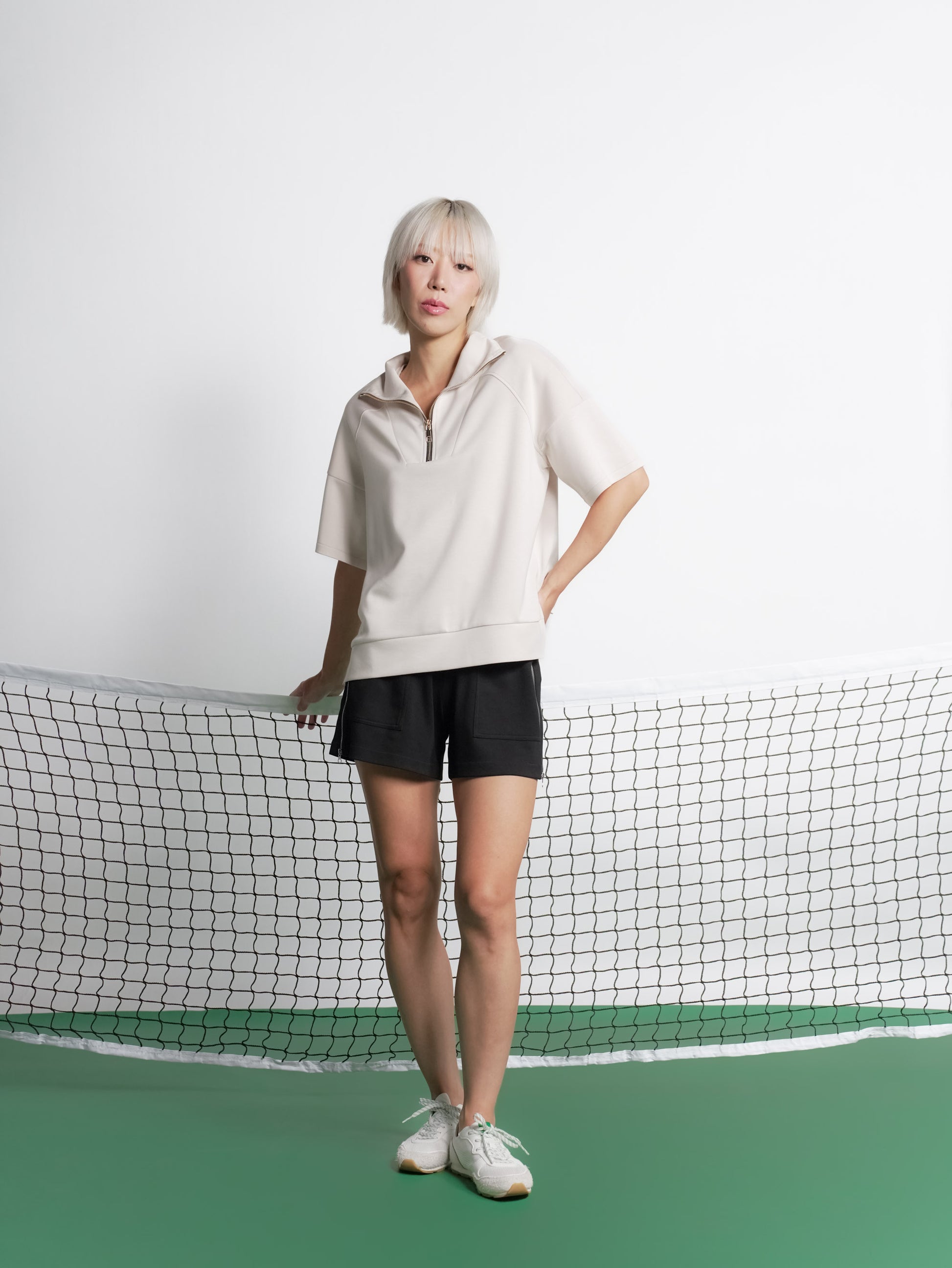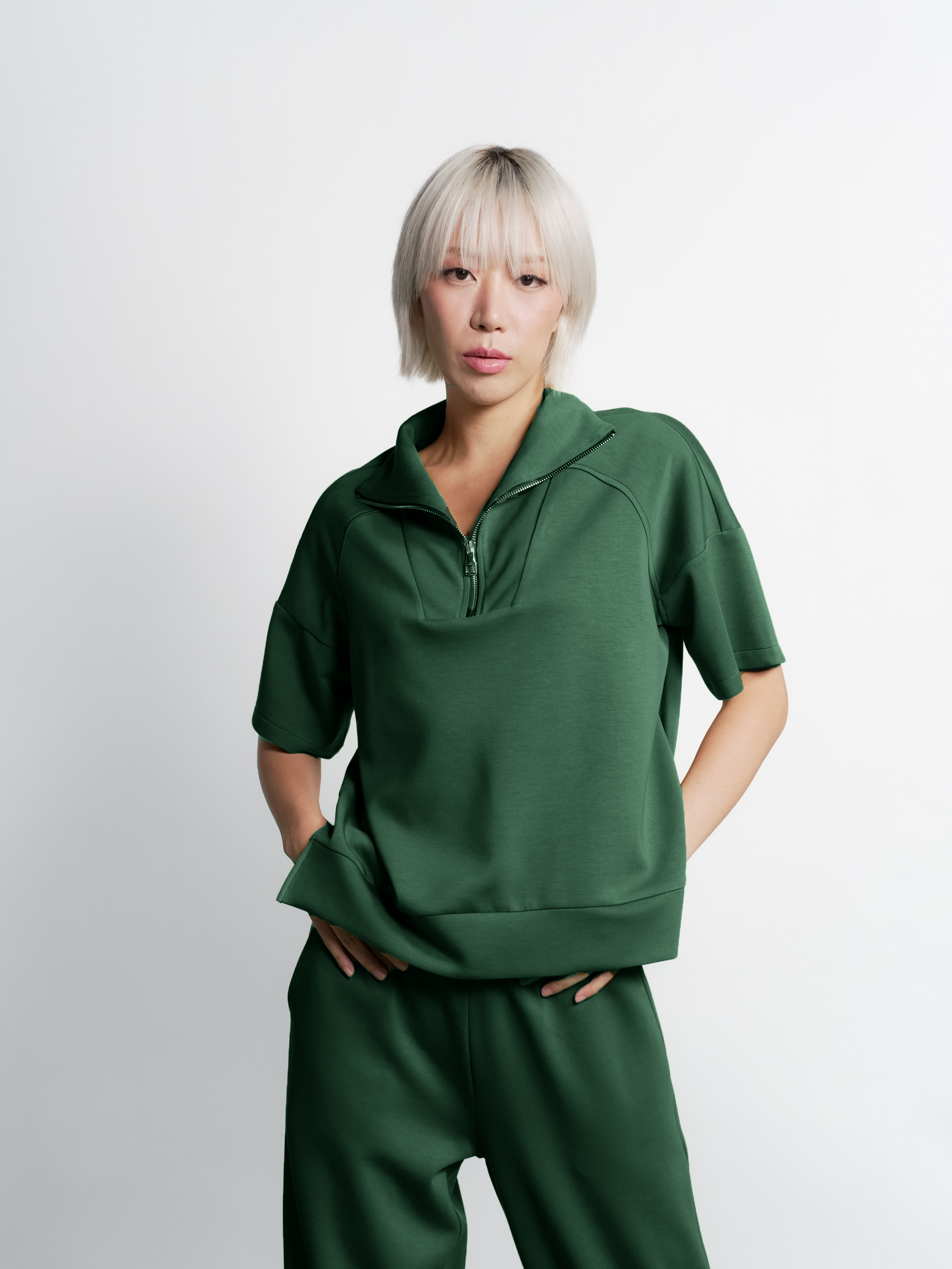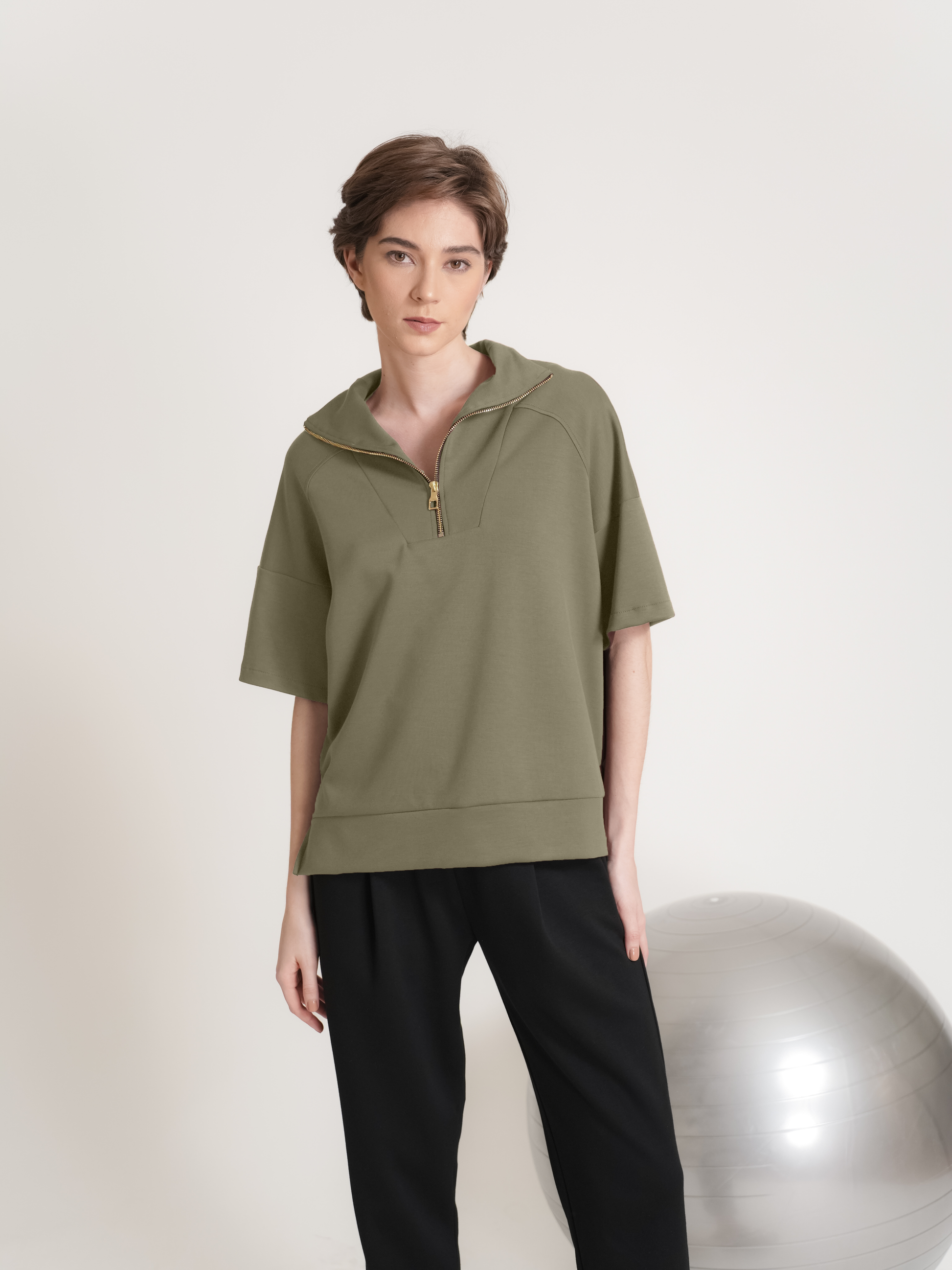 Achieve comfort and style with the Nimbus Top. The high neck, zip collar and drop shoulder design create a unique look, while the short sleeves offer practicality. With this top, you'll have a trendy and functional addition to your wardrobe.