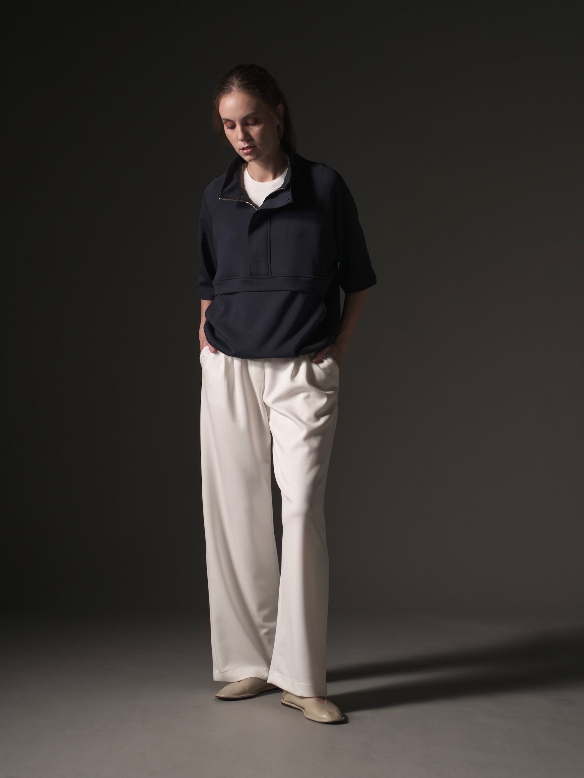 The Onyx Top combines athleisure style with effortless comfort. Featuring an oversized fit and raglan sleeves, it allows unrestricted movement, while the half zip lets you adjust ventilation. The tugged hem adds a subtle shape, making it perfect for both workouts and casual wear.